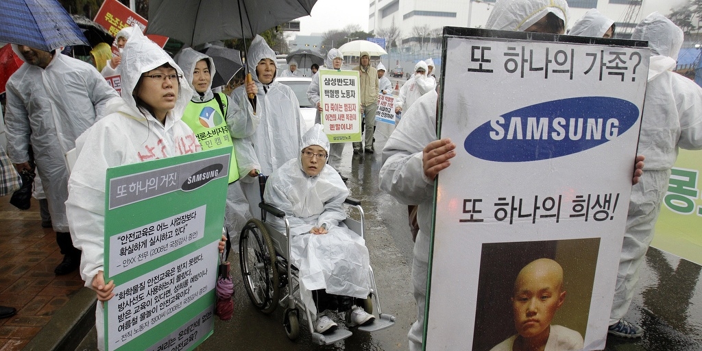 Критика към Samsung наскоро бяха отправили и членовете на организация наречена Поддръжници за здраве и права на хората в индустрията за полупроводници (SHARPS), които твърдят, че поне 26 служителя на фабриките на Samsung “Он-Янг” и “Ги-хеунг” са развили рак на кръвта, като 10 от тях вече са починали.