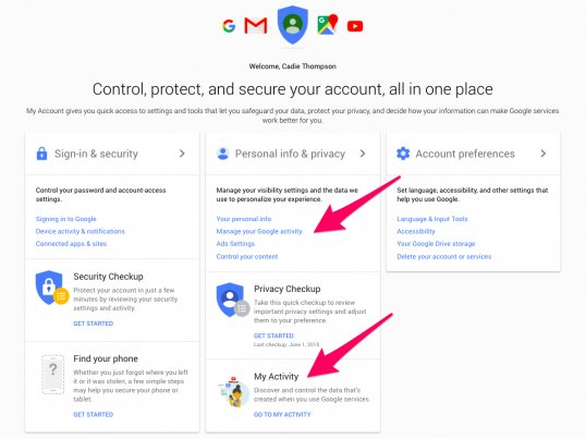 In June 2015, Google created a hub called “My Account,” where users can easily view the information the company is collecting and change their settings. And this week the company rolled out a new tool called “My Activity,” which shows you almost everything you do online related to your Google account.